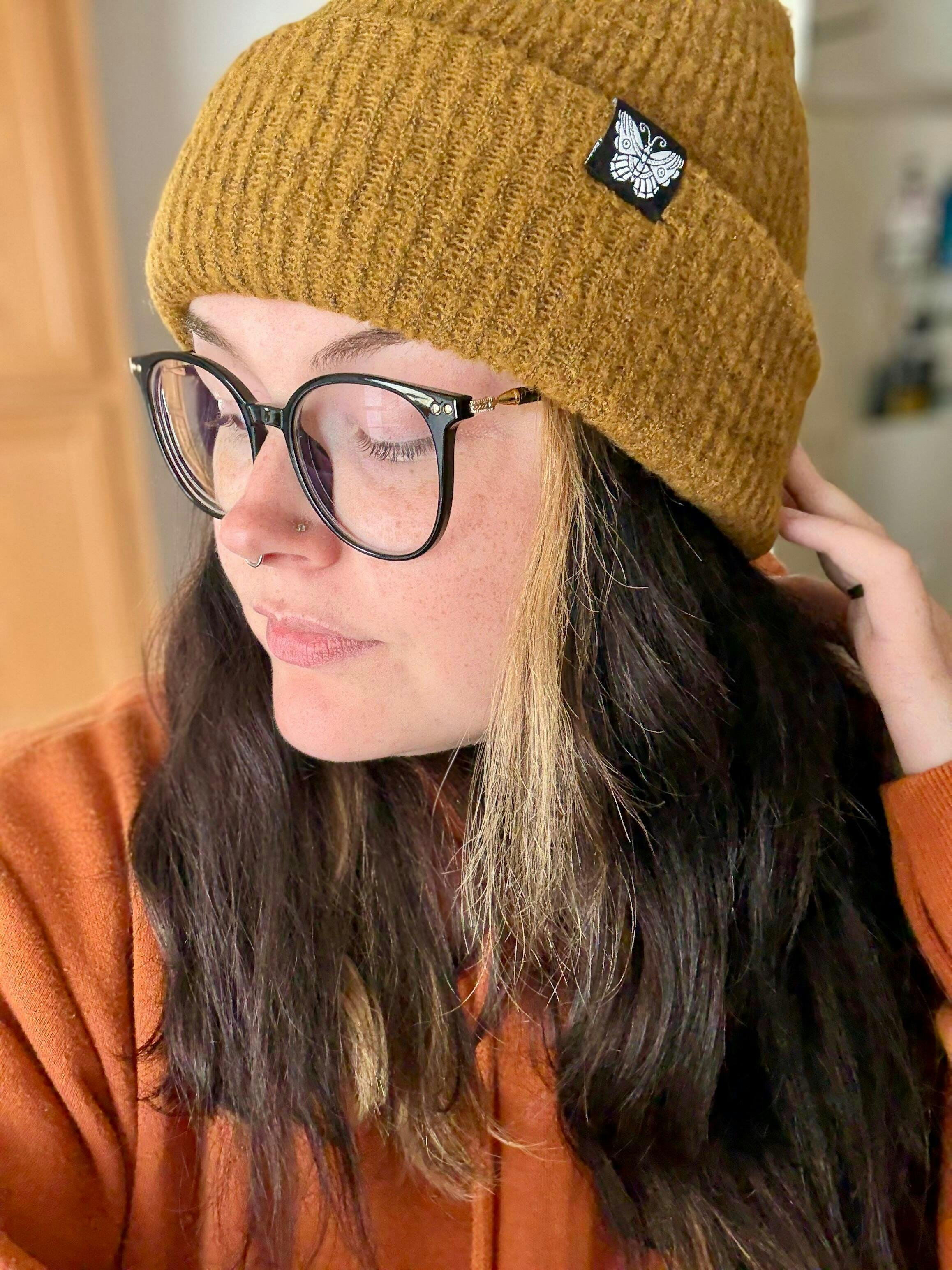 Maura Lewis (Allyn, US) The beanie is a beautiful dark mustard with flecks of black, which makes it a much more versatile piece. As always, thick, soft, and stretchy. I know I will be wearing it a ton during the colder months.