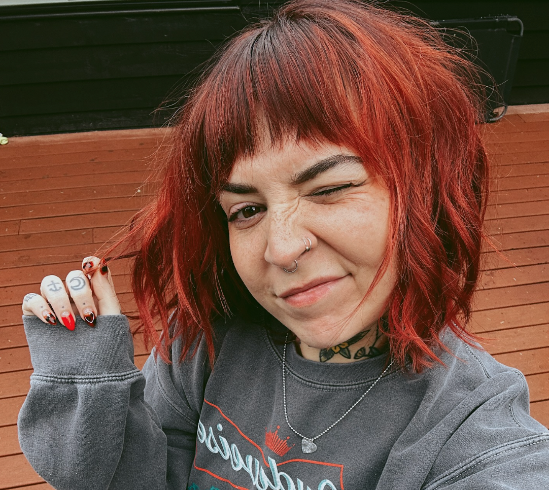 Full time dog mom + artist (link). She's been with us since October 2022. She keeps us all together, organized and sane. Highest respects to this professional thrifting goddess; her house is a literal fucking dream. If you order from us, she has most likely packed your order with tons of love.